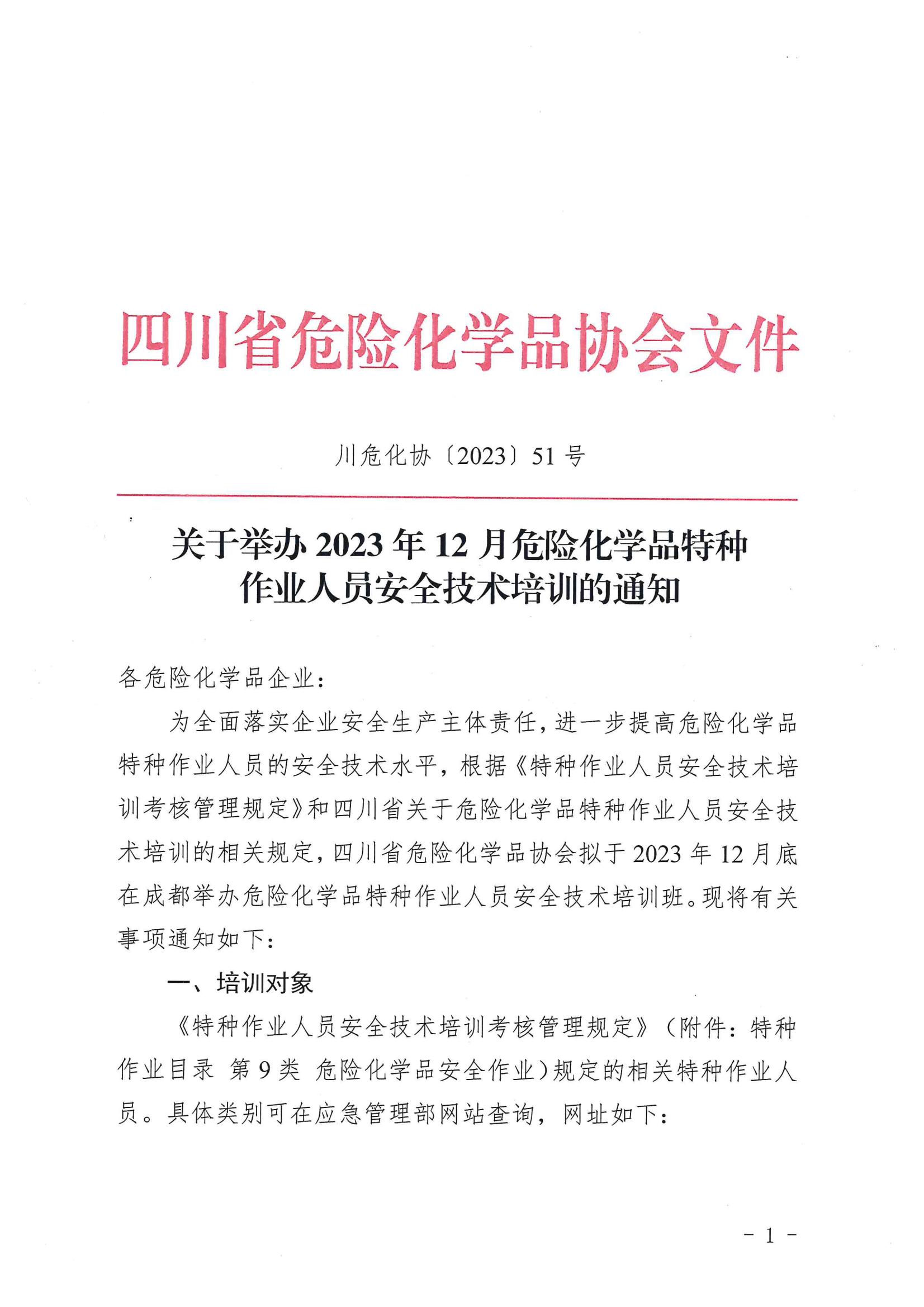 上一篇:关于召开四川省化工(危险化学品) 设备检维修安全管理交流培训会的预通知