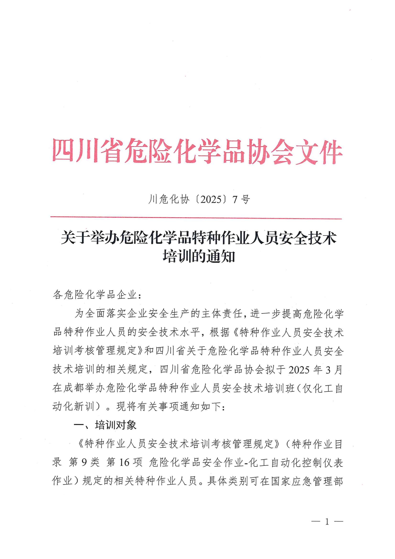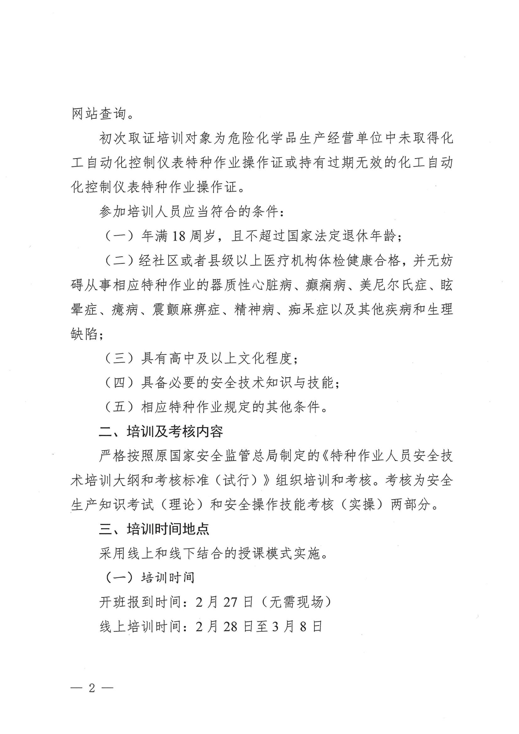 关于举办危险化学品特种作业人员安全技术培训的通知(自动化新训)